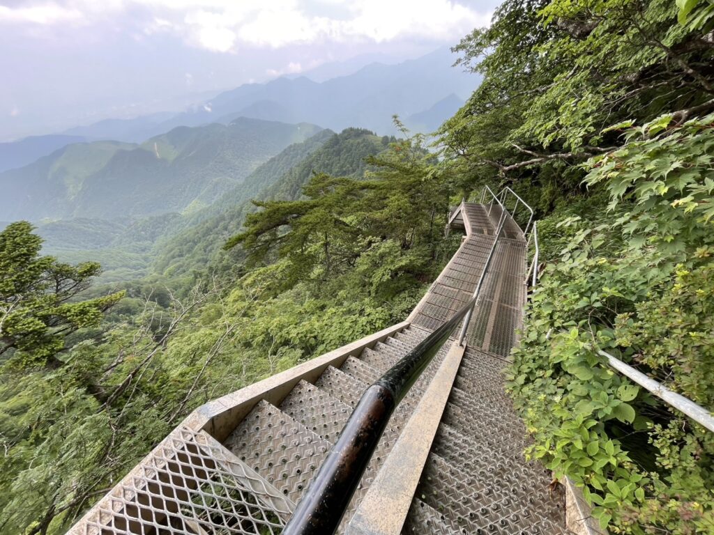 西日本最大級の高さを誇る石鎚山へ。今回はロープウェイを使わずに徒歩。土小屋から片道2時間半かけて登頂するルートで行きます。前を歩くおじいちゃんに習ってクマ鈴も持っていこ。国民宿舎の奥の・・・こっちが登山口。中国の山のような絶景登山道を進んでいくと、こわっ!足場崩壊してますやん。こんな崖にイカダゾーン作った人やばすぎ。神聖な鳥居をくぐりついに残り500m。近くにはガチ勢のためのヤバい鎖が。これはあかんやつや。過去一怖い、鉄の階段を抜け、ついに頂上に到着。なんなんだ、この鎖に封印された岩の集合体は。なんなんだ、あのとんがった先端部分は。とりあえず、他の山たちが全員後輩に見えましたよ。