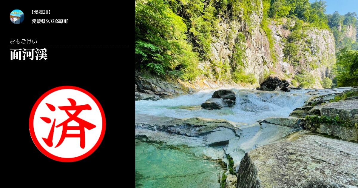 仁淀川の上流・面河渓へ。山道に突如現れた大鳥居をくぐり、洞窟のようなトンネルを抜けると、現れました面河渓。川に削られてツルッツルになった白い岩と透き通った水、その奥には断崖絶壁の切り立った岩山。それにしても涼しーねー。これぞ大自然。この大自然を上から見下ろすべくパノラマ台へ。魔法のステッキで蜘蛛の巣をかき分け、極狭ルートをのぼります。しいたけくんもパノラマしてはるわ。最後は鉄のハシゴをのぼってパノラマ台へ。足元気を付けながら絶景拝みました。